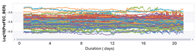 - **性能评估**:HCF 支持稳定**Pre-FEC BER** 水平,持续监测显示20天内无显著波动,确保高并发下的可靠性;这增强了可用性,但需注意大规模部署时的兼容性测试,以避免潜在集成问题。
