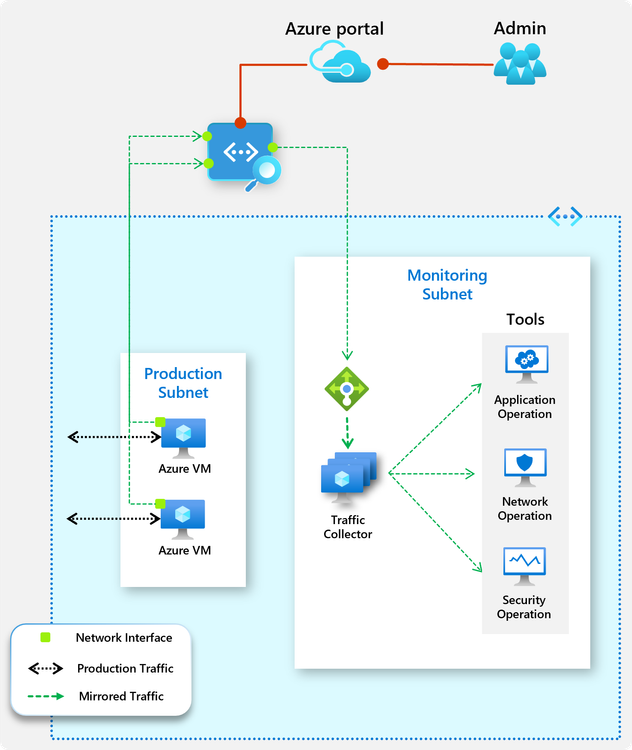 - **技术独特性**:TAP 利用 Azure 的原生基础设施实现流量镜像,支持通过网络接口配置,将流量定向至同一虚拟网络或对等虚拟网络中的 IP 地址,避免了传统数据包捕获方案的复杂性,如无需额外代理或设备。工作原理基于 **Azure 虚拟网络** 的镜像机制,将选定的网络流量复制至指定收集器,实现毫秒级监控。
